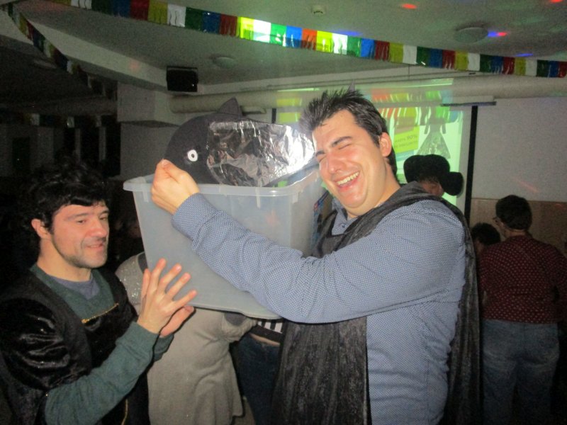Llegamos todos sobre las 5 de la tarde y no pusimos nuestros disfraces. Tuvimos unas lecciones muy intensas de salsa, y aprendimos los pasos básicos. Luego organizamos un "tú si que vales" en el que hicimos una competición por equipos bailando y cantando temas como (carnaval carnaval, eu si te pego…).